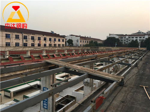 本工程位于江蘇常州市新北區圩塘菜市場,由江蘇杰達鋼結構工程有限公司承建,施工內容主要為菜市場拱形屋頂及兩側過道結構的拆除與新建,總施工面積約3000㎡,項目于2016年12月中旬開工,整體工程進展順利、質量可靠,受到建設單位一致好評。