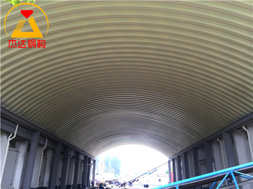 此外,鋼結(jié)構(gòu)材料的耐腐蝕性能和強(qiáng)度特點(diǎn),使得這種拱形屋頂在各種氣候條件下均表現(xiàn)出良好的穩(wěn)定性和使用壽命,適合長(zhǎng)期運(yùn)行的工業(yè)環(huán)境。