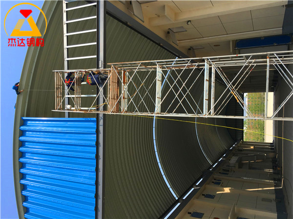 江蘇杰達鋼結構工程有限公司在該項目中嚴格按照施工規范執行各項流程,充分展現出企業在拱形屋頂施工領域的專業能力與責任擔當,為當地糧食儲備體系建設提供了穩定可靠的保障。