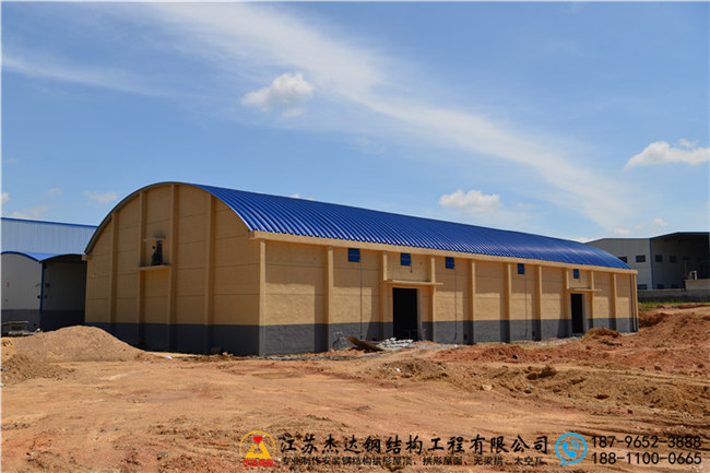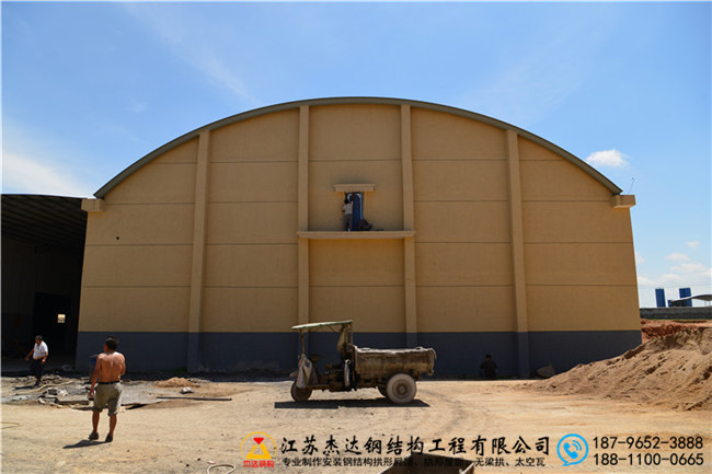 項目完工后,糧庫拱形屋頂不僅具有良好的防護性能,還適應當地氣候條件,具備較強的抗風能力和耐久性。此類結構適合于類似規模的糧食倉儲及工業廠房建設。