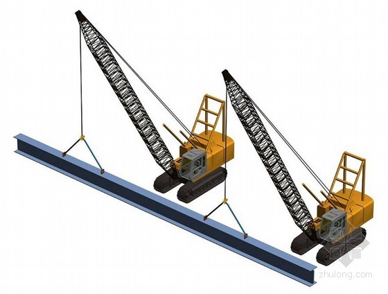 1、分段鋼梁長度適中時,吊裝采用一臺履帶吊完成,吊點設置在鋼梁1/3分段點處。