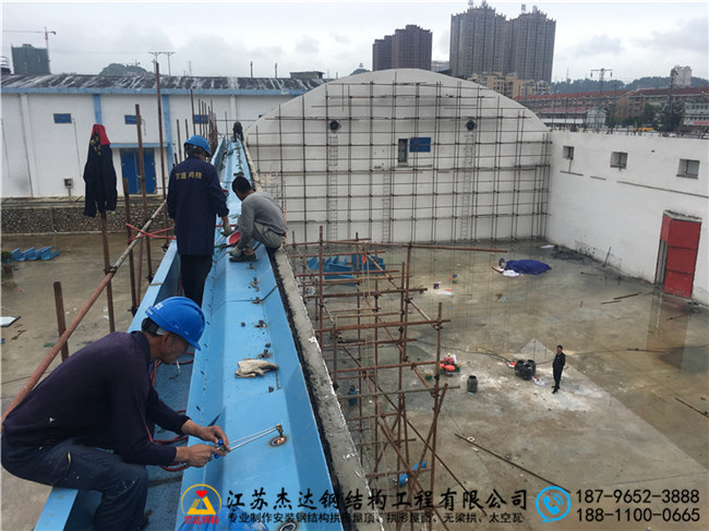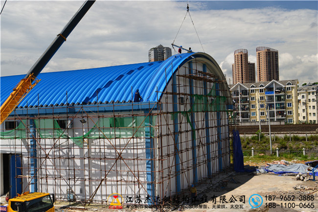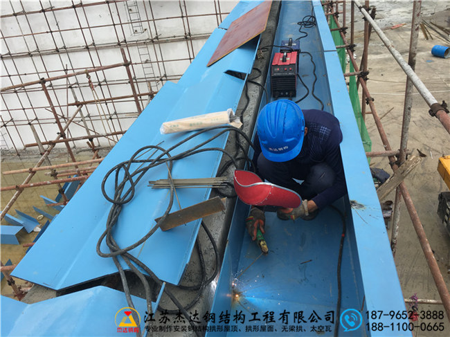 施工過程中,重點完成了吊裝拱形屋頂的作業,確保結構定位準確。下部結構焊接包括天溝和托板,提升連接處的牢固性和耐久性。