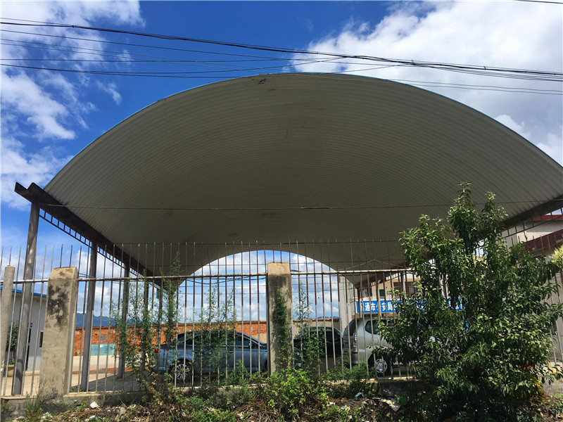 云南昭通12米跨度拱形屋頂車棚翻新工程