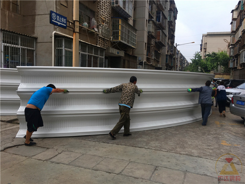 本工程位于云南省昭通市卷煙廠職工小區內,涉及兩棟拱形屋頂結構的改造,跨度均為12米,長度分別為40米和60米。施工環境復雜,人員來往頻繁,場地狹窄,給施工帶來了較大難度。然而,憑借豐富的施工經驗,施工團隊通過加班加點,僅用5天時間完成了車棚拱形屋頂的拆換工作,獲得了業主及小區居民的一致認可。