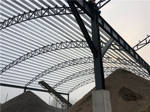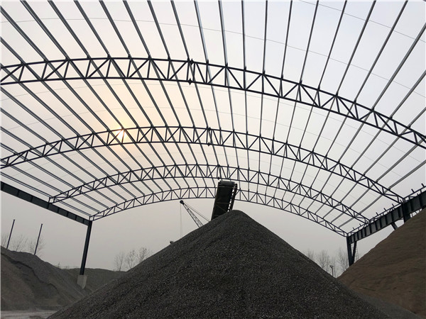 這些堆料車間一般是由于政府下達的混凝土公司需要治理揚塵的明文要求而建設的,所以如何將砂石料封閉起來,不讓它污染外界環(huán)境,以及如何降低成本,很少的錢,做很大、很高、很美觀、很具有經(jīng)濟效益的廠房,尤為重要。