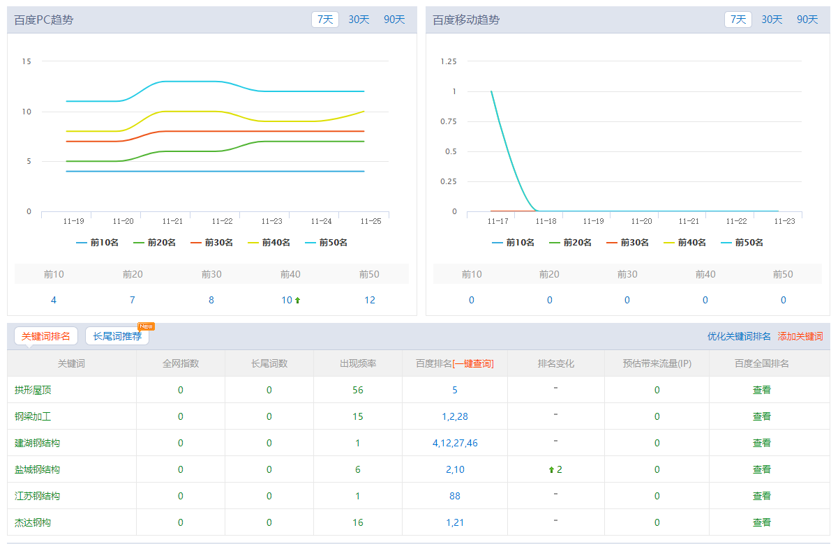 從安全上的數(shù)據(jù)來看,我們的鹽城鋼結(jié)構(gòu)這個關(guān)鍵詞同期上升了兩名,杰達鋼構(gòu)這個關(guān)鍵詞上升了一名。