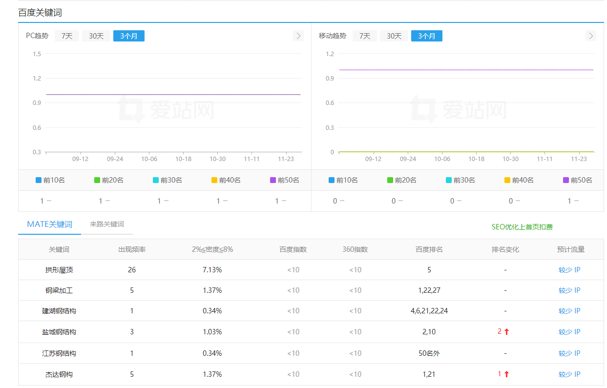 我們這個網(wǎng)站在前20名的關(guān)鍵詞有鋼結(jié)構(gòu)新聞太空瓦拱形面和鋼結(jié)構(gòu)梁,這幾個詞里面能夠變現(xiàn)的是鋼結(jié)構(gòu)梁,所以對于鋼結(jié)構(gòu)的鋼梁加工鋼柱加工,我們也要進行持續(xù)深入的優(yōu)化。