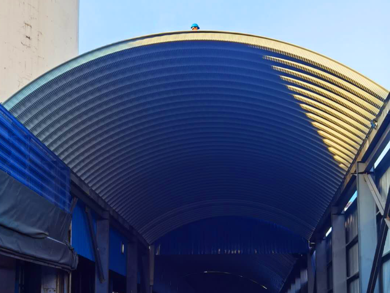金屬拱形屋頂結構安裝完成,等待后續質量驗收。